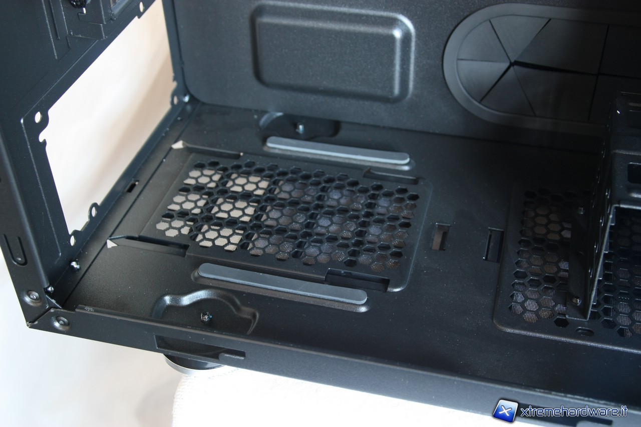 La ventilazione interna merita una riflessione,sicuramente sarà quasi obbligatorio adottare due ulteriori ventole per massimizzare la ventilazione interna del case,il nostro consiglio è quello di disporle internamente nel fondo del case,sfruttando così anche la presenza dei filtri antipolvere. Lasciando il Trooper così come si presenta all’acquisto, non avremo ventole che immetteranno aria all'interno del cabinet. Girando i supporti per gli hard disk, la situazione sicuramente migliorerà, dipendemente comunque da quante unità abbiamo intenzione di montare. Nel caso infatti in cui gli hard disk siano meno di 3, potremo girare uno dei due sopporti, beneficiando quindi di un minimo di ventilazione in ingresso che gioverà sicuramente ai nostri componenti interni.