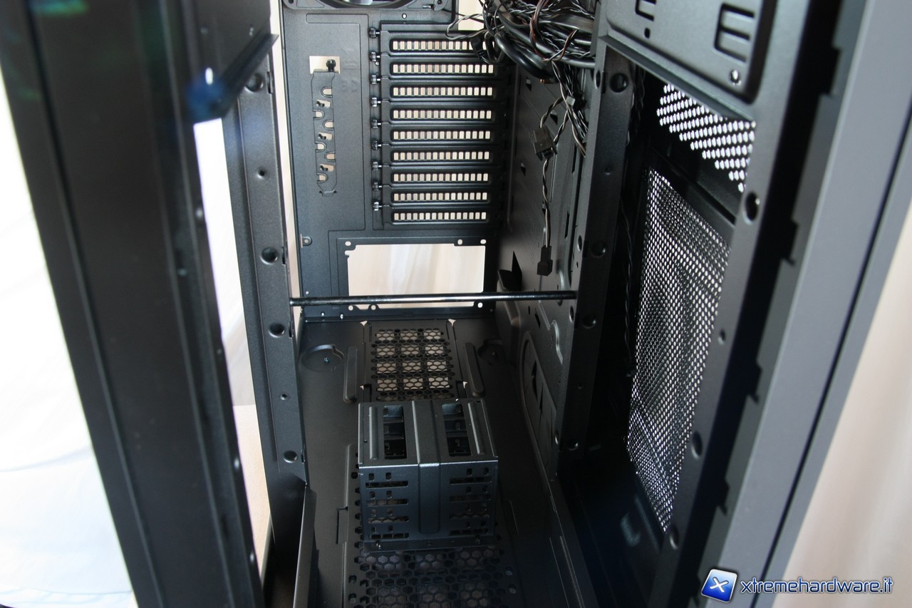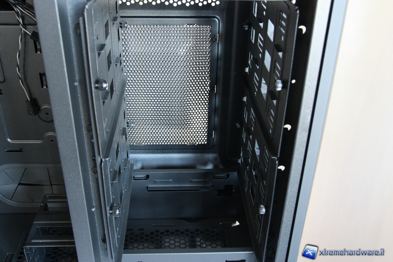 A questo punto potremo rimuovere i due cestelli per gli hard disk, segnaliamo anche qui l'estrema cura dei particolari, i fili delle ventole sono infatti fissate alla struttura del cage.